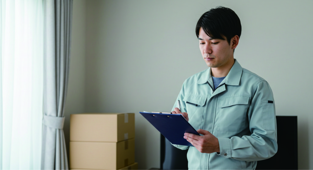 鍵の受け渡しや、報告のタイミング、作業中にお客様に連絡がつきやすい時間帯などをご確認させていただき、 作業当日の流れをお互い再度確認いたします、作業前にご近所の方にご挨拶とご案内が必要な場合は、 その旨をお伝えいたします。また駐車スペースや近隣の交通事情などご教示いただけると幸いです。
